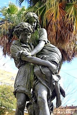 The famous statue of Paul et Virginie depicting the tragic Romeo and Juliet of Mauritian literature.