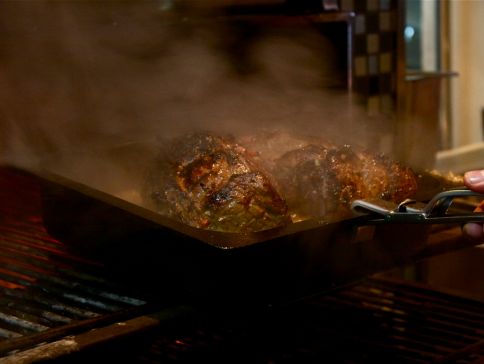 The Josper Oven is ideal for cooking meat, such as steaks, lamb, seafood, pork chops and more. For example, to cook a T-bone steak, a chef would typically rest the meat in the warming cabinet of the oven while waiting for the oven to preheat to an optimal temperature (300-350 degree Celcius) for grilling. The steak is salted as it cooks and grilled for three minutes on each side. While the steak is grilling, it is important to keep the oven door closed, to keep the smoke and moisture within the oven. Once the meat is cooked and the oven door is opened, heat and smoke will be released from the oven. This is because of the charcoals burning within. A sprinkle of salt and the T-bone steak is ready to be served with that desirable char and caramelized crust.
