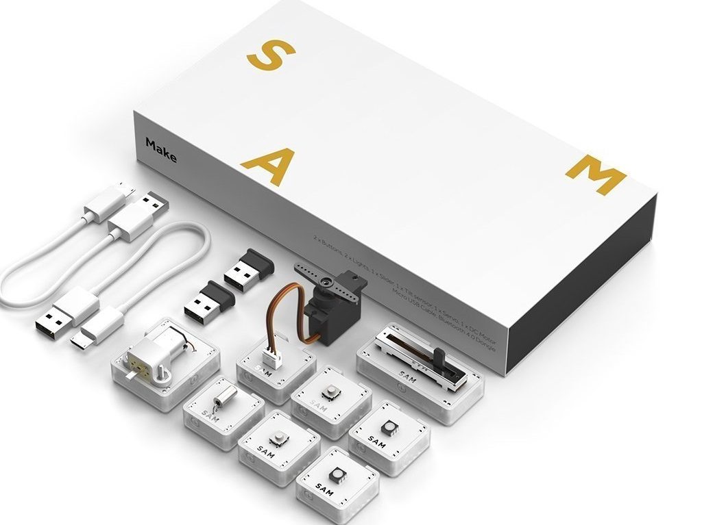 While simple enough for a five-year old to play with, the SAM Labs kits come with advanced features including IFTTT (“If This Then That”, an automation platform), Twitter and Facebook incorporation, plus MIDI and a whole host of logic gates, to enable even complicated projects for creative adults.