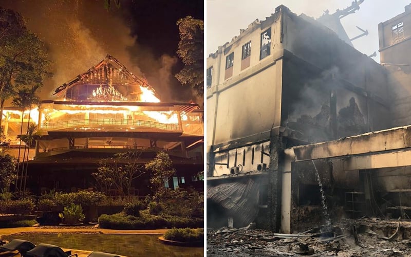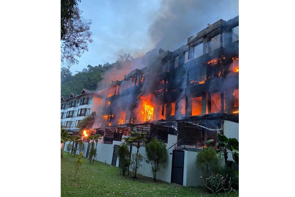 However, about three hours later, the fire had re-erupted and an emergency call was placed at 1:13am. Whipped by strong winds, the blaze spread to engulf nearly the entire building, much of which is clad in wood, reflecting the five-star resort’s idyllic Langkawi rainforest setting.
