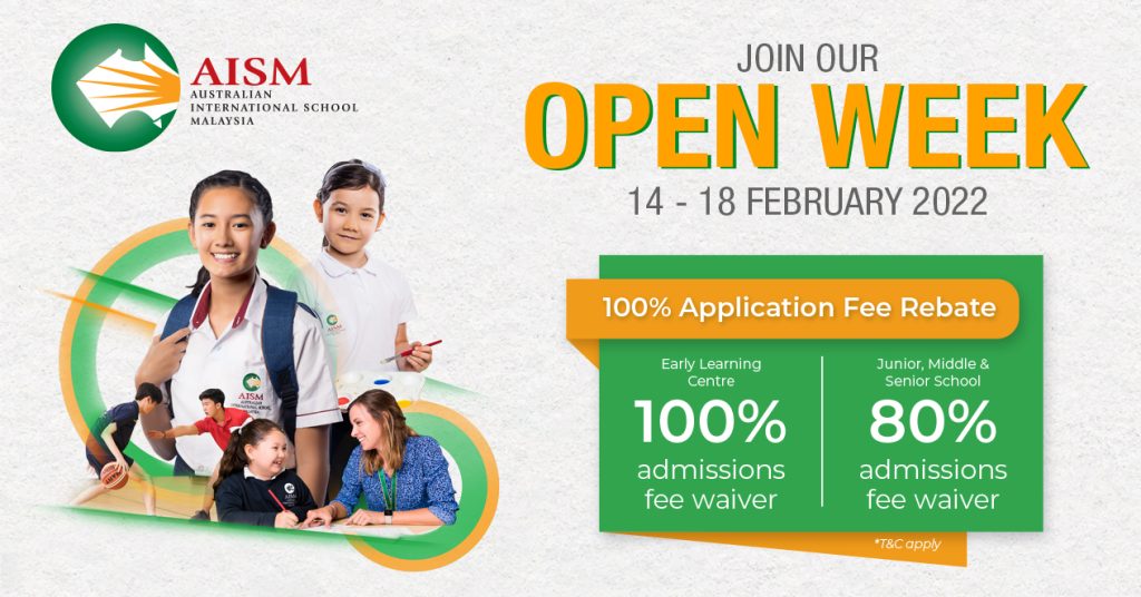If holistic education with an exceptional academic environment is what you want for your child, do consider Australian International School, Malaysia. Join their Open Week from 14 to 18 February 2022 and enjoy 100% application fee rebate, 100% admissions fee waiver for Early Learning Centre and 80% admissions fee waiver for Junior, Middle and Senior School. Contact the admissions team to find out more and register.