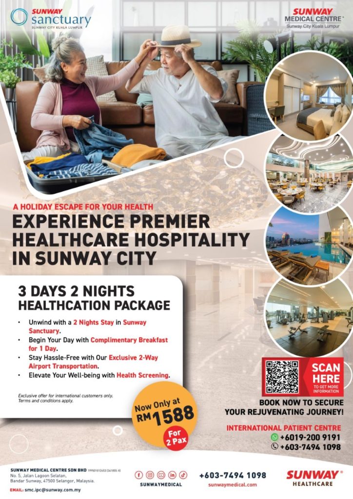 Indulge in the perfect fusion of leisure and self-care, reassured that your health is Sunway Medical Centre’s top priority. From cutting-edge diagnostics to wellness consultations, every aspect of your stay is meticulously crafted to ensure you depart not only rejuvenated but also armed with a personalised plan for a healthier lifestyle.