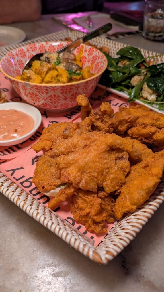 There was quite a bit on the menu which interested us, honestly speaking, so after these two starters, we just opted for a platter that included a good variety. Our choice was the ‘Soul Food Platter’ (RM90), which came piled with Fried Cheeken, Pink Bombshell Burger Sliders, Truffle Baked Mac-No-Cheese, Roasted Cauliflower and Pumpkin Salad, and Homemade Crisps. This was plenty for at least three people (perhaps more if another dish were ordered), and we loved it.