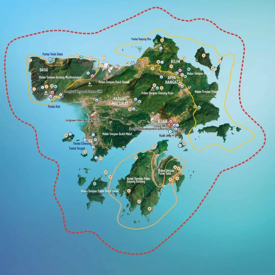 These areas include the Kilim Karst Geoforest Park (in the island’s northeast), Machinchang Cambrian Geoforest Park (northwest), and Dayang Bunting Marble Geoforest Park (south). Only the latter is found outside of the main island of Langkawi.