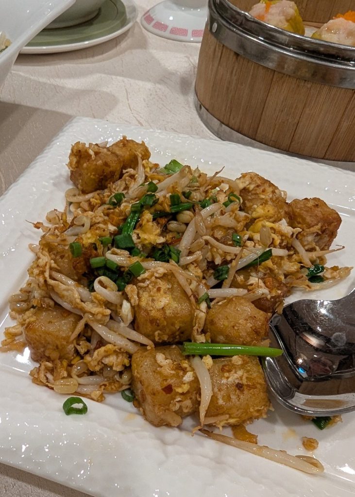 Like most diners whose reviews we checked, we agree that the overall experience – food, setting, and service – holds up well, making Long Feng a solid option for quality Chinese dining in central Melaka. The best part? The prices are fantastic given the cuisine and the elegant ambiance of the dining room. Our dim sum selections were only RM13 nett each, an amazing price for these dishes in a proper setting like this. The steamed BBQ pao selection was RM15 nett, but it included three buns, whereas we’re accustomed to getting only two at many dim sum places! (Similarly, we had four siu mai dumplings rather than the more common three… excellent!) Moreover, the delicious pan-fried turnip cake was only RM9 nett. The fried rice we ordered, wok-fried Yang Zhou style, was outstanding, and it’s available in two sizes, both quite generous (RM24/RM44 nett).