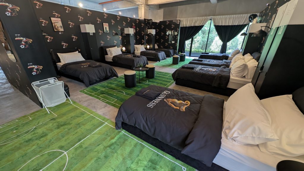 And when the night winds down, the Guinness-branded bedrooms deliver comfort in style. Designed to accommodate up to 20 guests, each room features contemporary furnishings, thoughtful touches, and a starter pack that includes Guinness Draught in a Can, ensuring the celebration doesn’t end with the game.