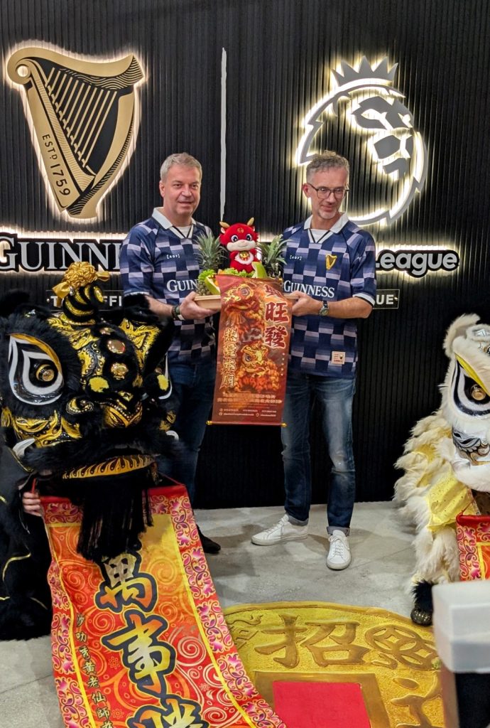 Marketing Director Sean O’Donnell (R) officially kick off the Guinness Clubhouse following the customary lion dance